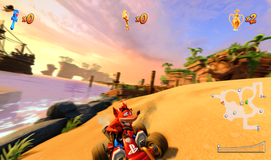 Phiên bản PlayStation 4 của Nitro-Fueled bao gồm các skin độc quyền cho Crash, Coco và Cortex dựa trên sự xuất hiện đa giác của họ trongCrash Team Racing ban đầu, cùng với các kart low-poly bổ sung và theo dõi phần thưởng theo chủ đề retro. Người chơi đã đặt hàng trước phiên bản này cũng nhận được một bộ nhãn dán theo chủ đề PlayStation để tùy chỉnh kart.