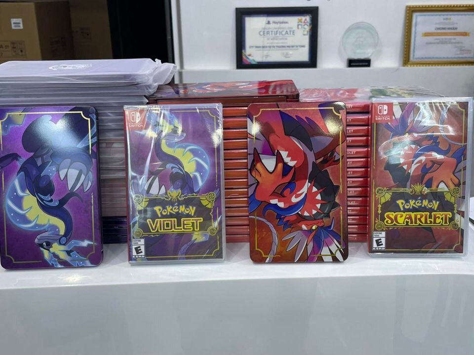 Phiên bản đóng gói bao gồm 1 game Pokémon Scarlet vật lý và 1 game Pokémon Violet vật lý. Nếu bạn mua gói đôi vật lý hoặc kỹ thuật số, bạn sẽ nhận được phần thưởng 200 Poké Ball thông qua mã tải xuống* có thể được nhập vào tính năng Quà tặng bí ẩn** trong trò chơi của bạn!