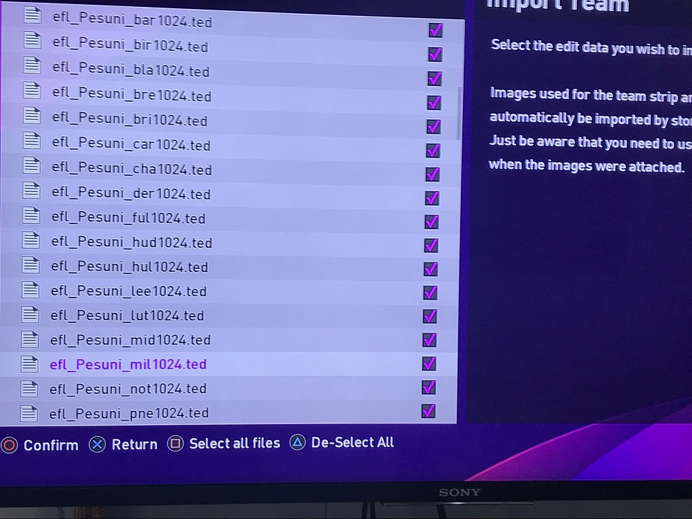 Import/Export > Import Images > Competition Emblems chọn dữ liệu trên usb sau đó nhấn vuông và chọn Ok