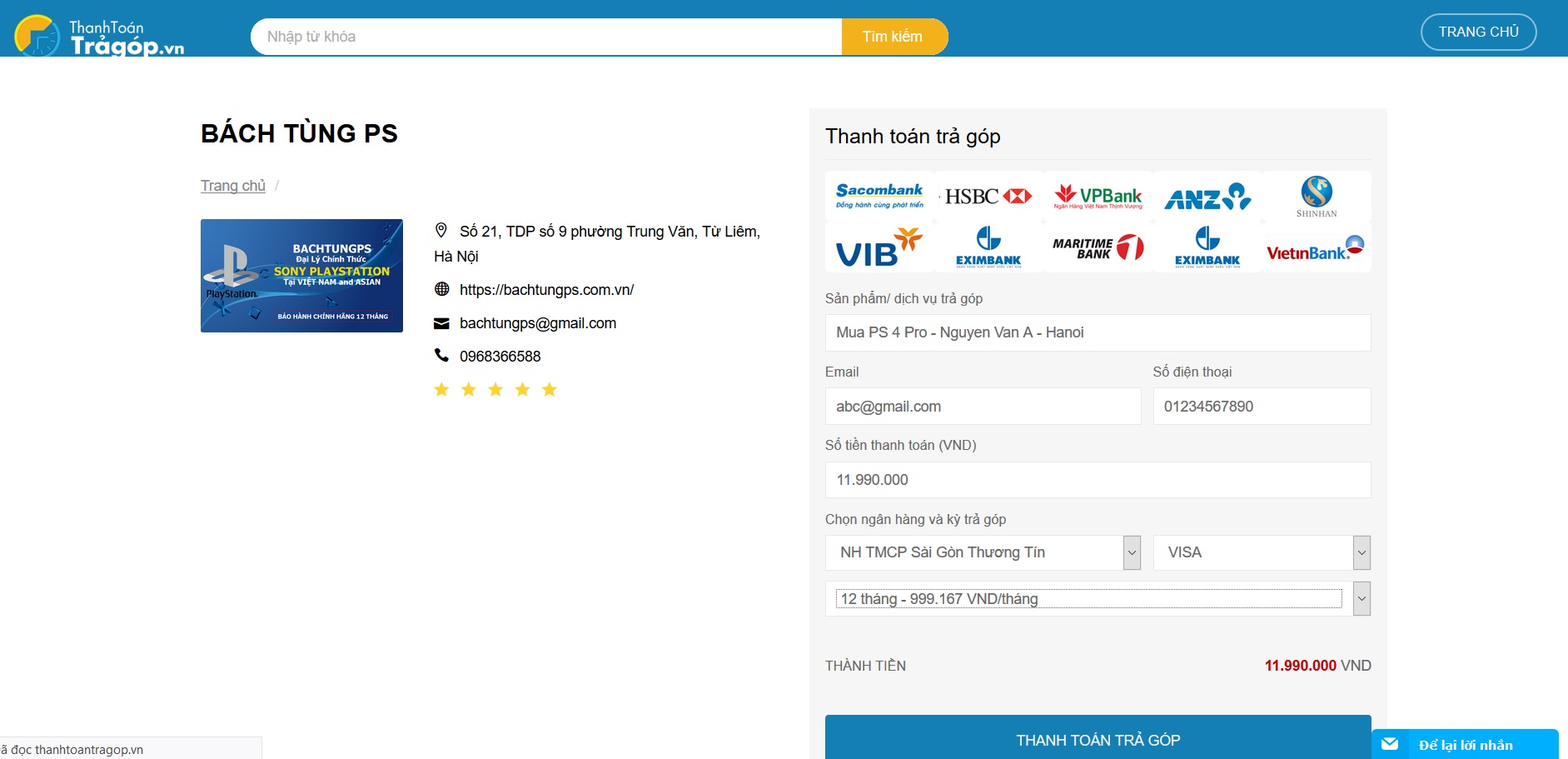 Hướng dẫn Thanh toán trả góp Online tại Bách Tùng PS