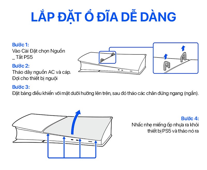 Sony Disc Drive ổ đĩa rời cho PS5 Digital Edition dùng cho Ps5 Slim digital và Ps5 Pro tháo lắp dễ dàng.bạn chỉ việc tháo chiếc ốp máy phía dưới của PS5 ra và gắn ổ đĩa vào, sau đó gắn lại là xong.