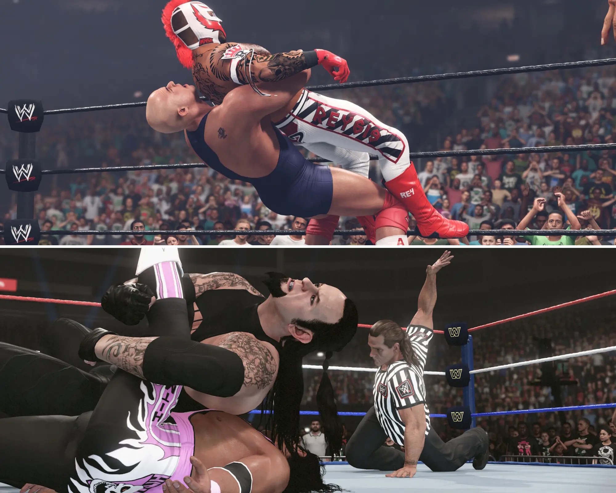 Khi đến với bản game năm nay dù cho bạn có là một fan lâu năm của thương hiệu này hoặc lâu lâu chỉ chơi các game đấu vật để giải trí thì WWE 2K24 đều rất dễ làm quen. Có thể lúc mới bắt đầu chơi, các bạn cần phải làm quen với rất nhiều thứ từ các đòn ôm, vật, tỳ đè và cả một mini-game thường xuyên xuất hiện giữa trận đấu là Trade Blow. Thế nhưng sau khi nắm rõ những thứ đó thì việc làm chủ võ đài là việc nằm trong tầm tay bạn. Trong phần game mới này các bạn không chỉ có thể thi triển các đòn kết liễu và các chiêu thức mang tính thương hiệu của từng đô vật lên kẻ thù, mà bây giờ bạn còn có các đòn thế Super Finisher (siêu tuyệt chiêu?) để thi triển khi cần thiết. Khi mà các bạn làm đầy ba thanh năng lượng là bạn có thể thi triển Super Finisher thứ mà nếu biết sử dụng đúng lúc thì việc xoay đổi tình thế là việc nằm trong tầm tay. Việc các bạn có thể làm quen với game nhanh một phần cũng là nhờ cơ chế điều khiển đã được cải tiến khiến cho chúng trở nên nhạy hơn rất nhiều, đồng thời cách các nhân vật di chuyển cũng chân thật hơn so với các bản trước đó.